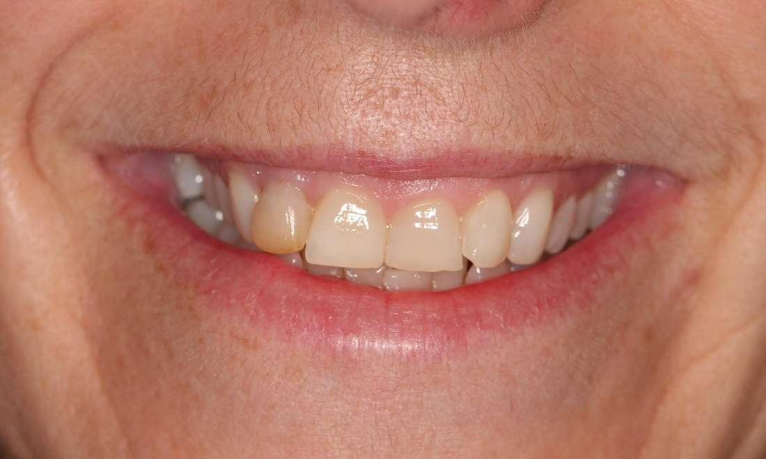 This lady was concerned about her crowded teeth and discolored upper front tooth. We placed ceramic veneer on that discolored tooth after Invisalign treatment. The whole treatment was completed within 12 months and she is so happy with the result.